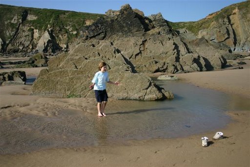 Description: Lets get wet at this rock pool on Marleos beach Pembrokeshire